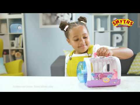 New from Little Live Pets, it's Lil' Hamsters! Meet Popmello. Popmello is a real Lil' softie who always puts her friends first. This Lil' Hamster comes with her very own Hamster House. Place you hamster in their house to take them anywhere. Popmello loves running in her wheel and making it spin around. Watch as she runs about her house and run out the door to explore! After all that exercise its time to 'mello' out in your hands with a cuddle. She moves and sounds just like a real hamster! With soft flocked skin and colorful marshmallow designs, your new interactive hamsters come to life when you pat their back! Popmello loves to be held in your hand. Hold and pet your Lil' Hamster and hear her react to your touch! To calm you hamster, pick it up and pet its back. The more you pet your Popmello, the happier and more excited she will become! When your Lil' Hamster becomes super excited it will want to run off.