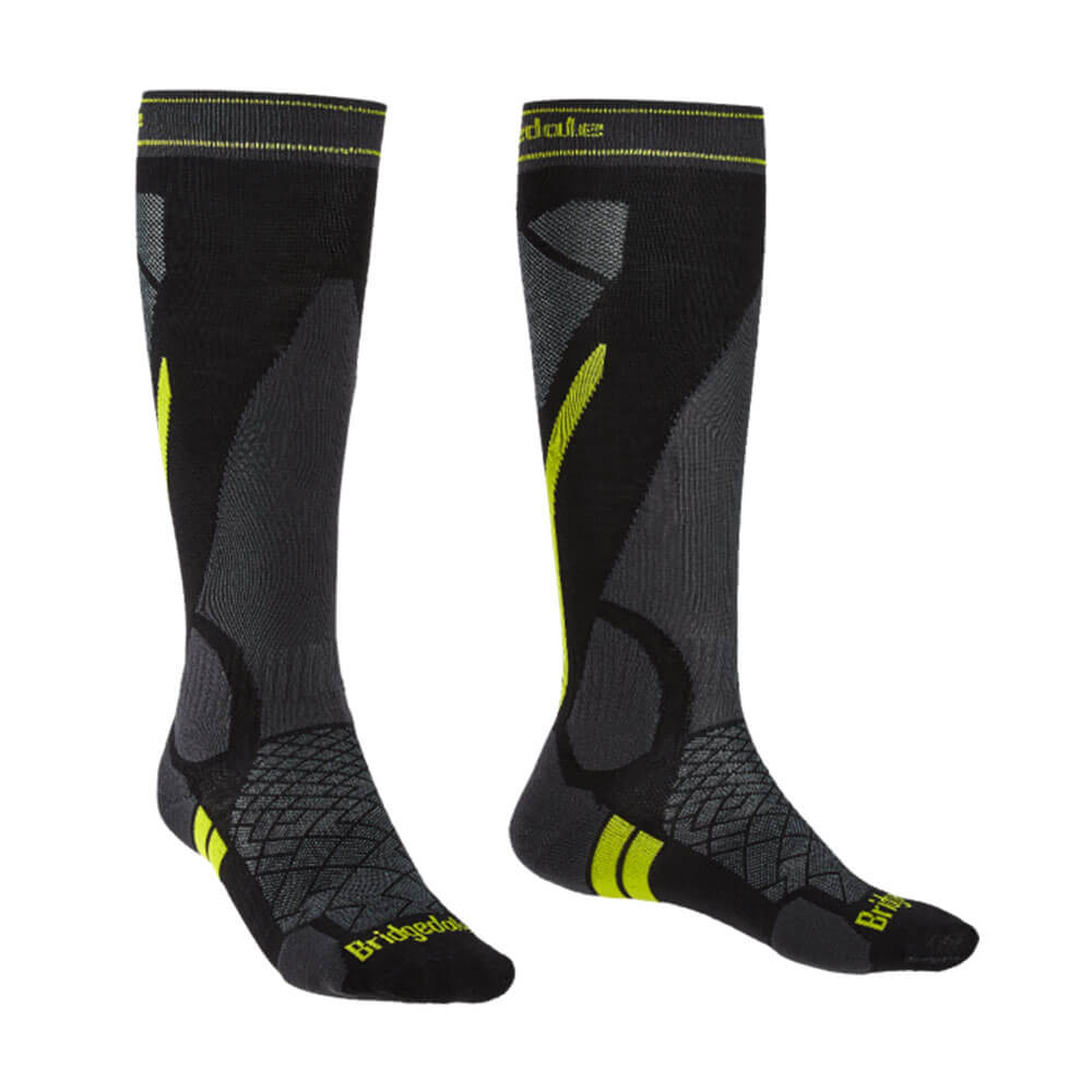 Lätt, över Calf Merinofusion ™ Ski Sock med mäns precisionsfit -system som innehåller Lycra® i hela för en stödjande, rynkfri passform. Tactel® Shin Pad för reducerad friktion plus mikroterry under fotkuddar.